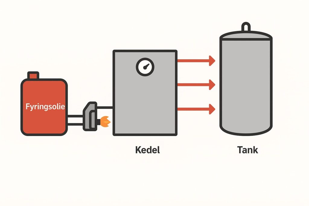 Fyringsolie anvendes i oliefyr med tre centrale komponenter: brænder, kedel og tank.
